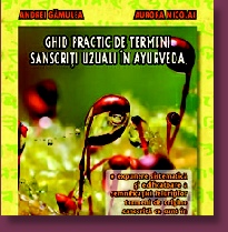 Acest ghid practic de termeni sanscriţi conţine termeni de origine sanscrită, care au fost adaptaţi într-o anumită măsură specificului limbii române şi care au intrat deja în limbajul curent al celor care studiază şi folosesc în mod constant, în prezent, în România, baza informaţională deosebit de valoroasă a sistemului tradiţional Ayurveda. Fiecare dintre termenii de origine sanscrită incluşi în acest glosar conţine o scurtă definire în limba română, ce este urmată apoi de o explicaţie pe larg, utilă în special pentru înţelegerea noţiunilor şi conceptelor specifice sistemului de gândire ayurvedic.